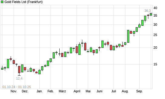 Mit dem Anstieg auf 36,30 EUR hat die Gold Fields-Aktie (ISIN ZAE000018123) am 30.09.2025 ein neues All-Time-High erreicht und damit den Kurs vom 22.09.2025 eingestellt.Die Gold Fields-Aktie ...weiterlesen