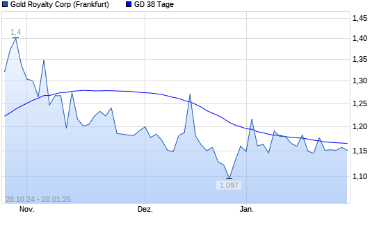 Mit dem Anstieg auf 1,16 EUR hat die Gold Royalty Corp-Aktie am 27.01.2025 die 38-Tage-Linie nach oben gekreuzt.