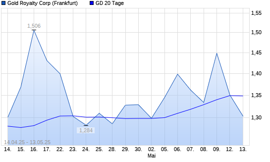 Mit dem Rücksetzer auf 1,35 EUR hat die Gold Royalty Corp-Aktie am 12.05.2025 die 20-Tage-Linie nach unten gekreuzt.