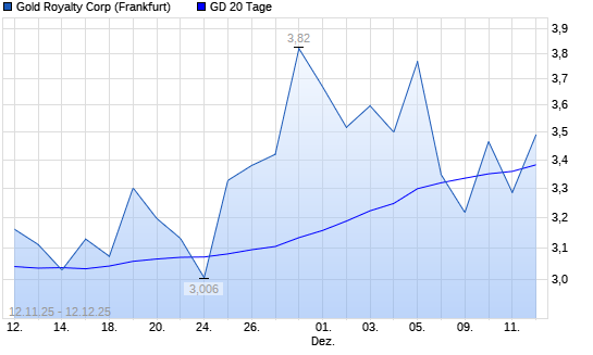 Mit dem Rücksetzer auf 3,29 EUR hat die Gold Royalty Corp-Aktie am 11.12.2025 die 20-Tage-Linie nach unten gekreuzt.
