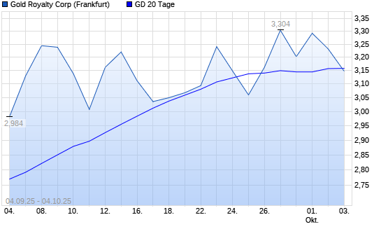 Mit dem Rücksetzer auf 3,15 EUR hat die Gold Royalty Corp-Aktie am 03.10.2025 die 20-Tage-Linie nach unten gekreuzt.Die Gold Royalty Corp-Aktie befindet sich seit dem 10.04.2025 im langfristigen ...weiterlesen