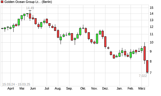 Mit dem Rücksetzer auf 7,03 EUR hat die Golden Ocean Group-Aktie (ISIN BMG396372051) am 14.03.2025 ein neues 12-Monats-Tief erreicht und damit den Kurs vom 11.03.2025 eingestellt.