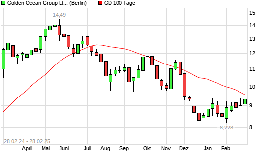 Mit dem Rücksetzer auf 9,09 EUR hat die Golden Ocean Group-Aktie am 27.02.2025 die 100-Tage-Linie nach unten gekreuzt.