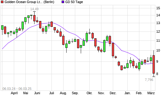 Mit dem Rücksetzer auf 8,00 EUR hat die Golden Ocean Group-Aktie am 05.03.2025 die 50-Tage-Linie nach unten gekreuzt.