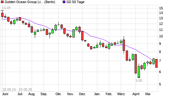 Mit dem Rücksetzer auf 6,56 EUR hat die Golden Ocean Group-Aktie am 21.05.2025 die 50-Tage-Linie nach unten gekreuzt.