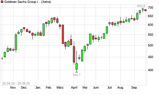 Mit dem Anstieg auf 683,70 EUR hat die Goldman Sachs-Aktie (ISIN US38141G1040) am 29.09.2025 ein neues All-Time-High erreicht und damit den Kurs vom 22.09.2025 eingestellt.