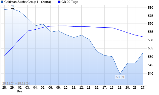 Mit dem Anstieg auf 556,90 EUR hat die Goldman Sachs-Aktie am 27.12.2024 die 20-Tage-Linie nach oben gekreuzt.