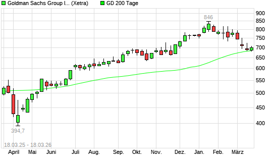 Mit dem Anstieg auf 703,30 EUR hat die Goldman Sachs-Aktie am 17.03.2026 die 200-Tage-Linie nach oben gekreuzt.