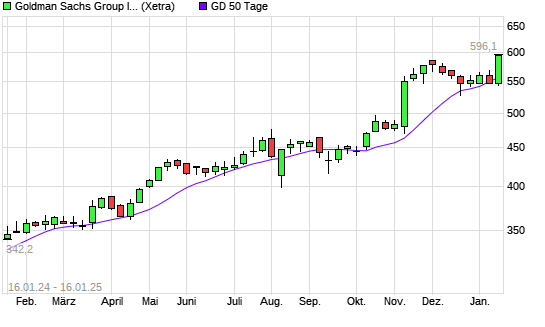 Mit dem Anstieg auf 590,00 EUR hat die Goldman Sachs-Aktie am 15.01.2025 die 50-Tage-Linie nach oben gekreuzt.