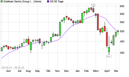 Mit dem Anstieg auf 499,15 EUR hat die Goldman Sachs-Aktie am 08.05.2025 die 50-Tage-Linie nach oben gekreuzt.