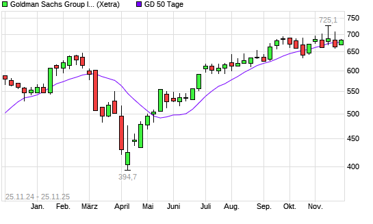 Mit dem Anstieg auf 686,40 EUR hat die Goldman Sachs-Aktie am 24.11.2025 die 50-Tage-Linie nach oben gekreuzt.