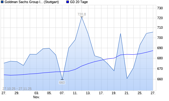 Mit dem Anstieg auf 706,10 EUR hat die Goldman Sachs-Aktie am 26.11.2025 die 20-Tage-Linie nach oben gekreuzt.Die Goldman Sachs-Aktie befindet sich seit dem 06.06.2025 im langfristigen Aufwärtstrend ...weiterlesen