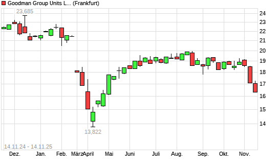 Mit dem Rücksetzer auf 16,62 EUR hat die Goodman Group Units-Aktie (ISIN AU000000GMG2) am 13.11.2025 ein neues 6-Monats-Tief erreicht und damit den Kurs vom 10.11.2025 eingestellt.