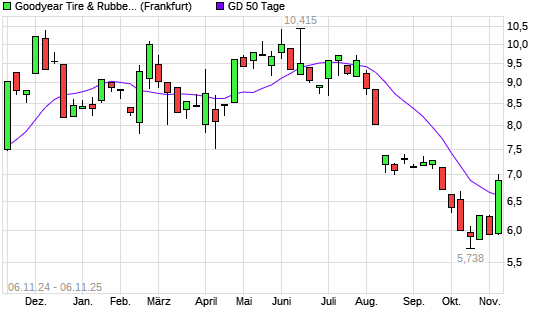 Mit dem Anstieg auf 7,00 EUR hat die Goodyear-Aktie am 05.11.2025 die 50-Tage-Linie nach oben gekreuzt.