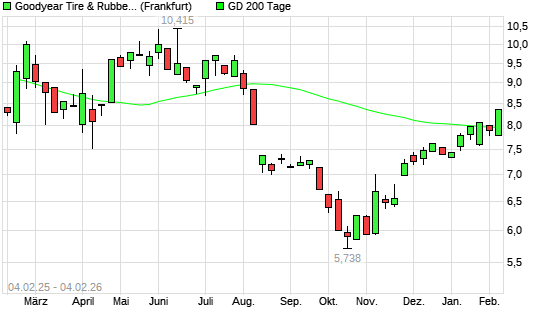 Mit dem Rücksetzer auf 7,83 EUR hat die Goodyear-Aktie am 03.02.2026 die 200-Tage-Linie nach unten gekreuzt.