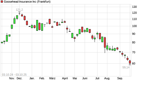 Mit dem Rücksetzer auf 60,50 EUR hat die Goosehead Insurance A-Aktie (ISIN US38267D1090) am 02.10.2025 ein neues 12-Monats-Tief erreicht und damit den Kurs vom 30.09.2025 eingestellt.