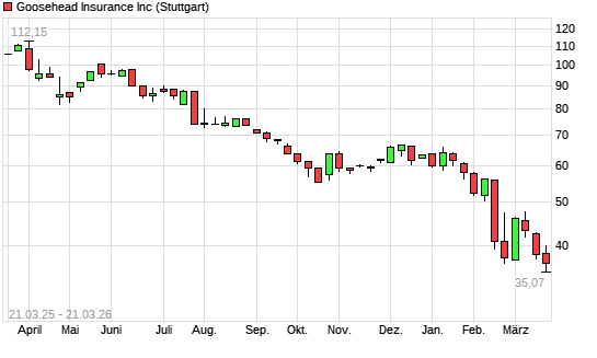 Mit dem Rücksetzer auf 34,50 EUR hat die Goosehead Insurance A-Aktie (ISIN US38267D1090) am 20.03.2026 ein neues 3-Jahres-Tief erreicht und damit den Kurs vom 16.03.2026 eingestellt.