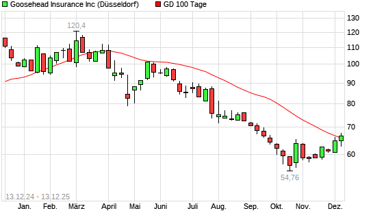 Mit dem Anstieg auf 66,32 EUR hat die Goosehead Insurance A-Aktie am 12.12.2025 die 100-Tage-Linie nach oben gekreuzt.