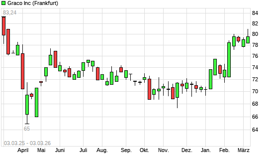 Mit dem Anstieg auf 80,92 EUR hat die Graco-Aktie (ISIN US3841091040) am 02.03.2026 ein neues 6-Monats-Hoch erreicht und damit den Kurs vom 13.02.2026 eingestellt.