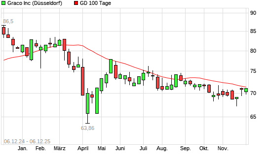 Mit dem Rücksetzer auf 71,42 EUR hat die Graco-Aktie am 05.12.2025 die 100-Tage-Linie nach unten gekreuzt.