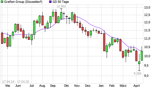 Mit dem Anstieg auf 10,47 EUR hat die Grafton Group-Aktie am 16.04.2025 die 50-Tage-Linie nach oben gekreuzt.Die Grafton Group-Aktie befindet sich seit dem 13.11.2024 im langfristigen Abwärtstrend ...weiterlesen