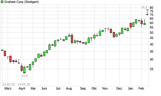 Mit dem Anstieg auf 72,00 EUR hat die Graham-Aktie (ISIN US3845561063) am 13.02.2026 ein neues All-Time-High erreicht und damit den Kurs vom 16.01.2026 eingestellt.