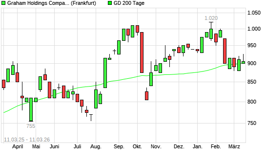 Mit dem Anstieg auf 925,00 EUR hat die Graham Holdings Company-Aktie am 10.03.2026 die 200-Tage-Linie nach oben gekreuzt.