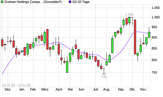 Mit dem Anstieg auf 950,00 EUR hat die Graham Holdings Company-Aktie am 11.11.2025 die 50-Tage-Linie nach oben gekreuzt.