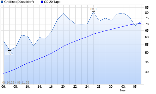 Mit dem Rücksetzer auf 69,40 EUR hat die Grail-Aktie am 05.11.2025 die 20-Tage-Linie nach unten gekreuzt.