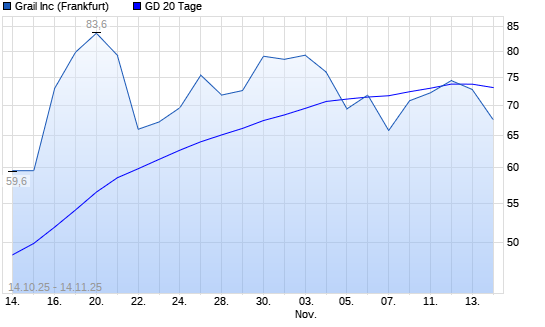 Mit dem Rücksetzer auf 72,80 EUR hat die Grail-Aktie am 13.11.2025 die 20-Tage-Linie nach unten gekreuzt.