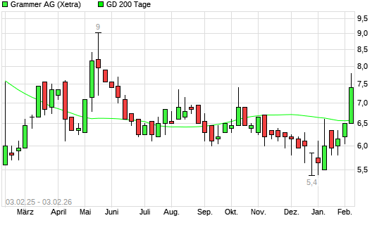 Mit dem Anstieg auf 7,85 EUR hat die Grammer-Aktie am 02.02.2026 die 200-Tage-Linie nach oben gekreuzt.