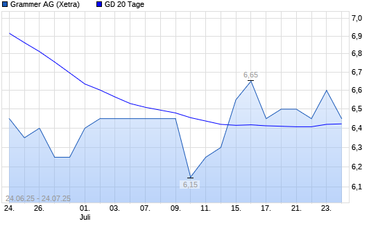 Mit dem Rücksetzer auf 6,30 EUR hat die Grammer-Aktie am 23.07.2025 die 20-Tage-Linie nach unten gekreuzt.
