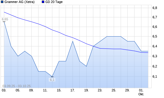 Mit dem Rücksetzer auf 6,25 EUR hat die Grammer-Aktie am 02.10.2025 die 20-Tage-Linie nach unten gekreuzt.