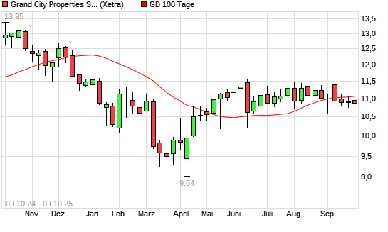 Mit dem Rücksetzer auf 10,88 EUR hat die Grand City Properties-Aktie am 02.10.2025 die 100-Tage-Linie nach unten gekreuzt.