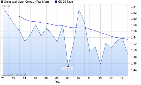 Mit dem Anstieg auf 1,54 EUR hat die Great Wall Motor Company-Aktie am 19.02.2025 die 20-Tage-Linie nach oben gekreuzt.