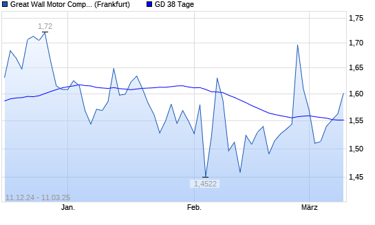 Mit dem Anstieg auf 1,56 EUR hat die Great Wall Motor Company-Aktie am 10.03.2025 die 38-Tage-Linie nach oben gekreuzt.