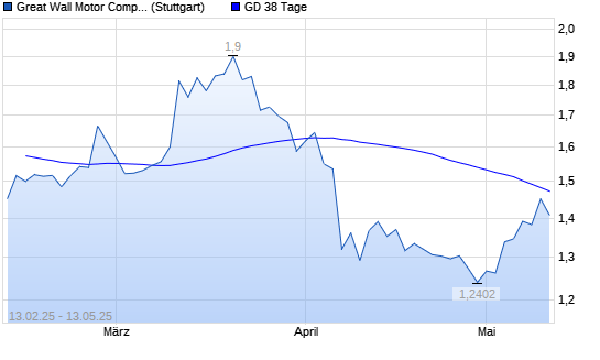 Mit dem Anstieg auf 1,46 EUR hat die Great Wall Motor Company-Aktie am 12.05.2025 die 38-Tage-Linie nach oben gekreuzt.