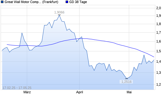 Mit dem Anstieg auf 1,42 EUR hat die Great Wall Motor Company-Aktie am 16.05.2025 die 38-Tage-Linie nach oben gekreuzt.
