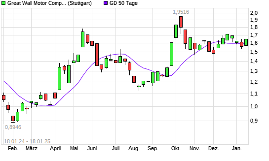Mit dem Anstieg auf 1,62 EUR hat die Great Wall Motor Company-Aktie am 17.01.2025 die 50-Tage-Linie nach oben gekreuzt.