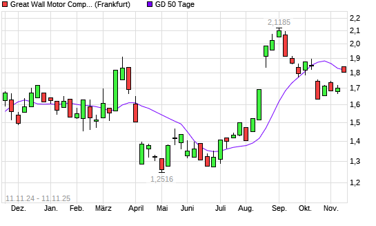 Mit dem Anstieg auf 1,84 EUR hat die Great Wall Motor Company-Aktie am 10.11.2025 die 50-Tage-Linie nach oben gekreuzt.
