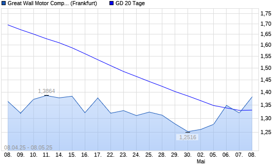 Mit dem Rücksetzer auf 1,32 EUR hat die Great Wall Motor Company-Aktie am 07.05.2025 die 20-Tage-Linie nach unten gekreuzt.