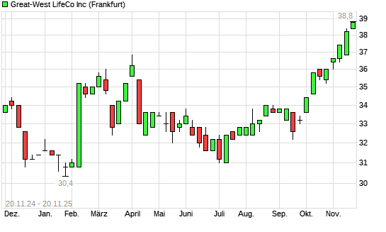 Mit dem Anstieg auf 38,60 EUR hat die Great-West LifeCo-Aktie (ISIN CA39138C1068) am 19.11.2025 ein neues All-Time-High erreicht und damit den Kurs vom 18.11.2025 eingestellt.