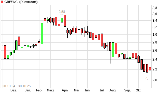 Mit dem Rücksetzer auf 2,12 EUR hat die Gree-Aktie (ISIN JP3274070006) am 29.10.2025 ein neues All-Time-Low erreicht und damit den Kurs vom 27.10.2025 eingestellt.