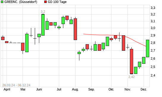 Mit dem Anstieg auf 2,82 EUR hat die Gree-Aktie am 05.12.2024 die 100-Tage-Linie nach oben gekreuzt.