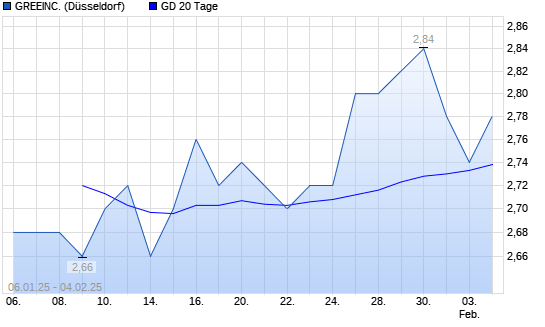 Mit dem Rücksetzer auf 2,76 EUR hat die Gree-Aktie am 03.02.2025 die 20-Tage-Linie nach unten gekreuzt.