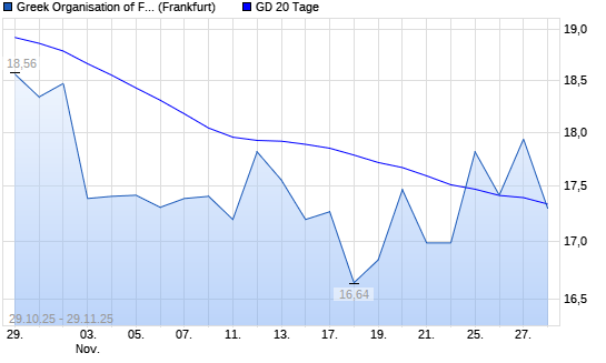 Mit dem Rücksetzer auf 17,30 EUR hat die Greek Organisation of Football Prognostics-Aktie am 28.11.2025 die 20-Tage-Linie nach unten gekreuzt.
