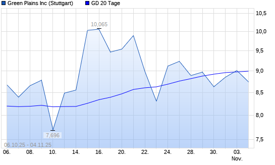 Mit dem Anstieg auf 8,95 EUR hat die Green Plains-Aktie am 03.11.2025 die 20-Tage-Linie nach oben gekreuzt.