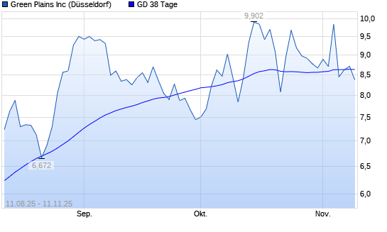 Mit dem Rücksetzer auf 8,39 EUR hat die Green Plains-Aktie am 10.11.2025 die 38-Tage-Linie nach unten gekreuzt.