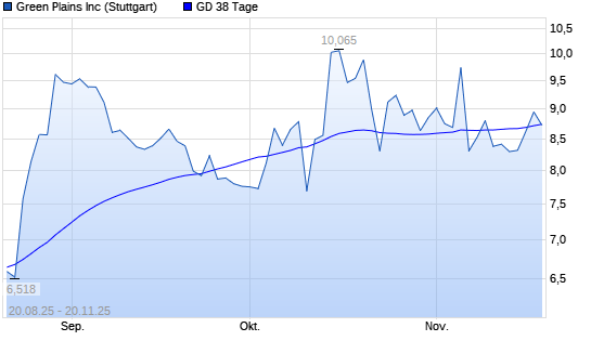 Mit dem Rücksetzer auf 8,55 EUR hat die Green Plains-Aktie am 19.11.2025 die 38-Tage-Linie nach unten gekreuzt.