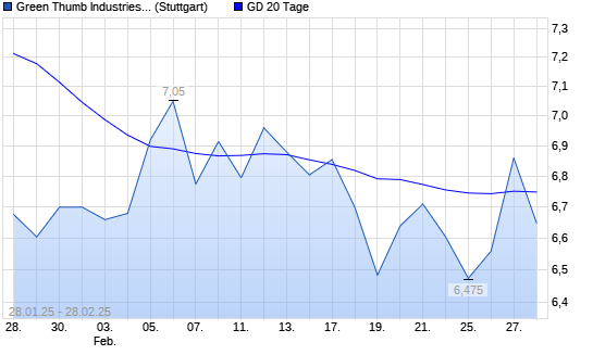 Mit dem Anstieg auf 6,86 EUR hat die Green Thumb Industries-Aktie am 27.02.2025 die 20-Tage-Linie nach oben gekreuzt.